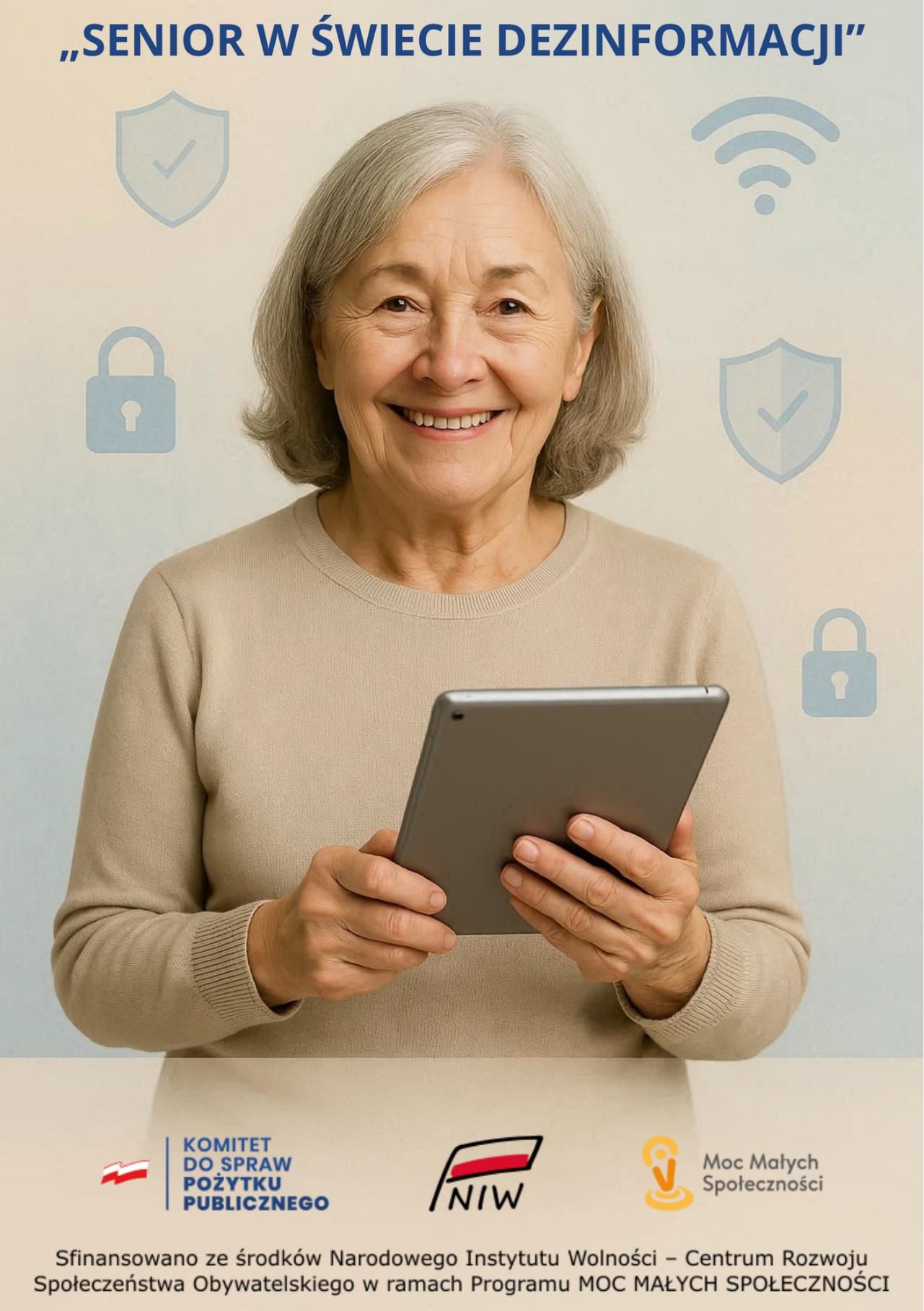 Zachęcamy do lektury broszury informacyjnej „SENIOR W ŚWIECIE DEZINFORMACJI”. Została stworzona z myślą o osobach starszych, które chcą korzystać z nowych technologii w codziennym życiu.
